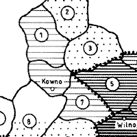 A térképen az 1915 őszén elfoglalt litván területeken végrehajtott 1916-os német összeírás látható: a Kelet-Poroszországtól, illetve délen Lengyelországtól keletre eső Litvániában, valamint az ettől délre fekvő Bialystoki körzetben. Összességében a lengyel-litván etnikai határ (lengyel oldalról) a Suwalki-Augustów-Grodno-Wasiliszki-Radun-Wilno-Szyrwinty-Malaty vonalon húzódik.