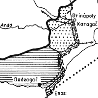 Bulgária hadbalépésének küszöbén a leendő szövetségesek rendezik határkérdésüket. Az 1915. szept. 6-i szófiai szerződésben Bulgária visszakapja a Maricán inneni területeket, északon egy Marica-Tundzsa közötti sávot, délen a Marica balparti sávját Enos városával, hogy Karagacon (Drinápoly jobbparti külvárosa) és a dimotikai vasúti csomóponton át biztosítva legyen Szófia és Dedeagac kikötőjének közvetlen vasúti összeköttetése. A neully-i béke a határszerződést érvényteleníti.