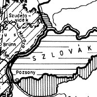 A szudétanémet probléma (127c, 163. térkép) erőszakos megoldása során Németország az 1938. szept. 29-i müncheni szerződés (198. térkép) eredményeként szerzi meg a Szudétavidéket, még azt is kikényszerítve, hogy Csehszlovákián keresztül területenkívüliséget élvező közvetlen autóút épüljön Bécstől Breslauig. A maradék Csehszlovákia felosztása során kerül hozzá 1939. márc. 16-án a Cseh-Morva Protektorátus.