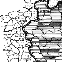 Az ortodox Vityebszki kormányzóságon (55,4 %) belül a Szebezstől (90,3 %) és Drisszától (62,4 %) nyugatra fekvő - később Lettországhoz tartozó - Lucini (19,6 %), Rezsicai (3,4 %) és Dünaburgi (9,6 %) járások kisebbségiek. A Vilnai kormányzóság (26,1 %) két keleti ortodox járása (Diszna 52,7 %, Vilejka 58,4 %) élesen elhatárolódik a kurföldi Iluxte (7,8 %), a kovnói Novoalekszandrovszk (2,1 %) és a vilnai Swenciany (9,6 %) járásoktól. A Minszki kormányzóságot (72,8 %) északnyugaton érintve a határ - kikerülve a vilnai Osmianyt (30,6 %) és Lydát (25,2 %) - nyugat felé fordul, s a nyugati Sokolka (18,2 %) és Bialystok (20,0 %) kivételével átfogja az ortodox Grodnói kormányzóságot (57,5 %). A grodnói Bielsk (49,3 %-os többség) után lép át a határ Orosz-Lengyelországba, ahol a Siedlcei kormányzóság (22,1 %) keleti Janów (50,4 %), Biala (54,0 %) és Wlodawa (57,1 %), valamint a Lublini kormányzóság (21,8 %) ugyancsak keleti Chelm (39,7 %), Hrubiesów (55,9 %) és Tomaszów (45,0 %) járásai ortodox többségűek. Lényegében ebből a hat járásból alakul 1912-ben a Chelmi kormányzóság (35b. térkép).