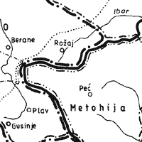 A mai Koszovó - a szerbek egyik eredeti lakóhelye (172a. térkép) - az albán Drin-alföldre nyíló, hegykoszorú (Sar, Kopanik, Crna, Mokra, Albán-Alpok) övezte területe 1878 előtt Üsküb/Skopjéval együtt a Prizreni mutessariflik része (64. térkép). Történelmi tájai a Pristina központú Koszovopolje/Rigómező a Sitnica (az Ibar mellékfolyója), valamint a Pec központú Metohija a Fehér-Drin völgyében.