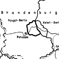 Berlint a Szövetséges Parancsnokság közösen irányítja, s 1946 őszén egész Nagy-Berlinben rendeznek választásokat (234. térkép). A szovjet-nyugati kapcsolatok 1947-es megromlásával, illetve a két német állam kikristályosodásával párhuzamosan formálódik - hivatalosan 1948 januárjában kettéválva - a főváros szovjet megszállási zónájából Kelet-Berlin, a nyugati zónákból Nyugat-Berlin (sajátos városállami státusát csak az 1971. szept. 3-i négyhatalmi szerződés szabályozza). Berlin nyugati zónáit három nyugati ellenőrzés alatt álló légifolyosó, két autópálya, három személy- és egy teherforgalmat bonyolító vasútvonal és a Mittelland-csatorna köti össze a nyugatnémet zónákkal.