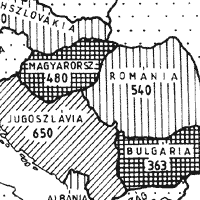 A 540-760 ezerre becsült (más: 2 millió) romániai cigányság hivatalos száma 1977-1992 között 227,4-ről (1,1 %) 409,7 ezerre (1,8 %) nő. Magyarországi becsült számuk 400-600 ezer, hivatalosan (1990) 142,7 ezer, a lakosság 1,4 %-a (249. térkép). Bulgáriában a 363-800 ezres becsléssel szemben hivatalosan (1956) élő 187,9 ezer (2,5 %) cigány többsége a Vracai, Plovdivi és Sztara Zagorai kerületben található (a lakosság 3-4 %-a). Csehszlovákiában a becslések 300-800 ezer között mozognak, a népszámlálás (1991) adata 114,1 ezer (0,7 %): Csehországban 33,5 ezer (0,3 %), Szlovákiában 80,6 ezer (1,5 %). A Kelet-Szlovákiában élő 57,8 ezer cigány 3,8 %-os arányát többen a legmagasabbnak tekintik Európában (ezen belül S. Nová Ves 7,9 % = 11,6 ezer, Kassa kerület 5,1 %, Poprad 5,0 %). Görögországban 45-140 ezerre teszik számukat (1951-es népszámlálás: 4,1 ezer), Albániában 50-80 ezer él, Lengyelországban 50-70 ezer (a népszámlálás nem mutatja ki őket; 1960-ban 12, német becslés szerint 30 ezer), Észtországban egy, Litvániában öt, Finnországban 8, Lettországban 15, az NSZK-ban 84, az NDK-ban 2,5 ezer.